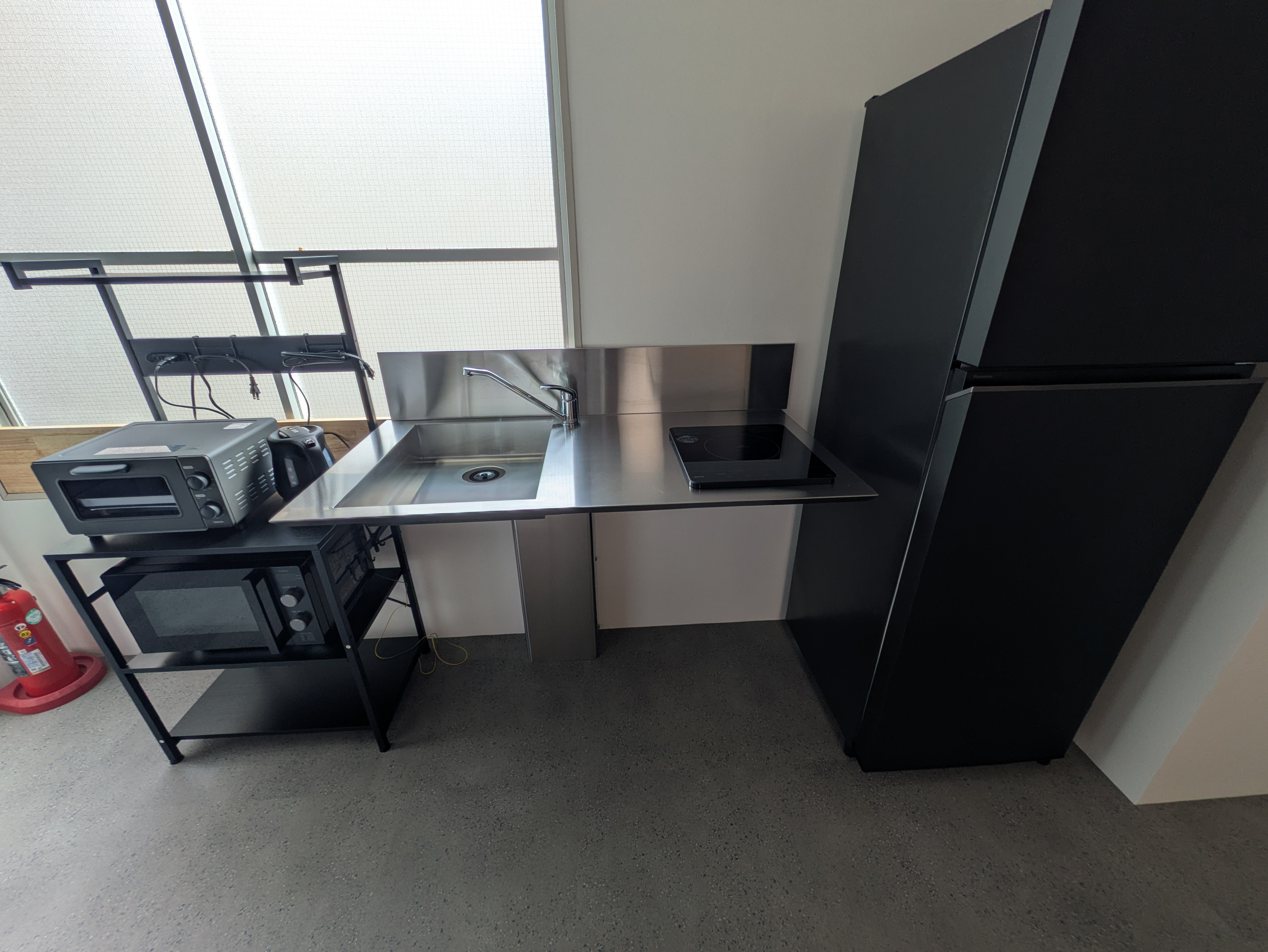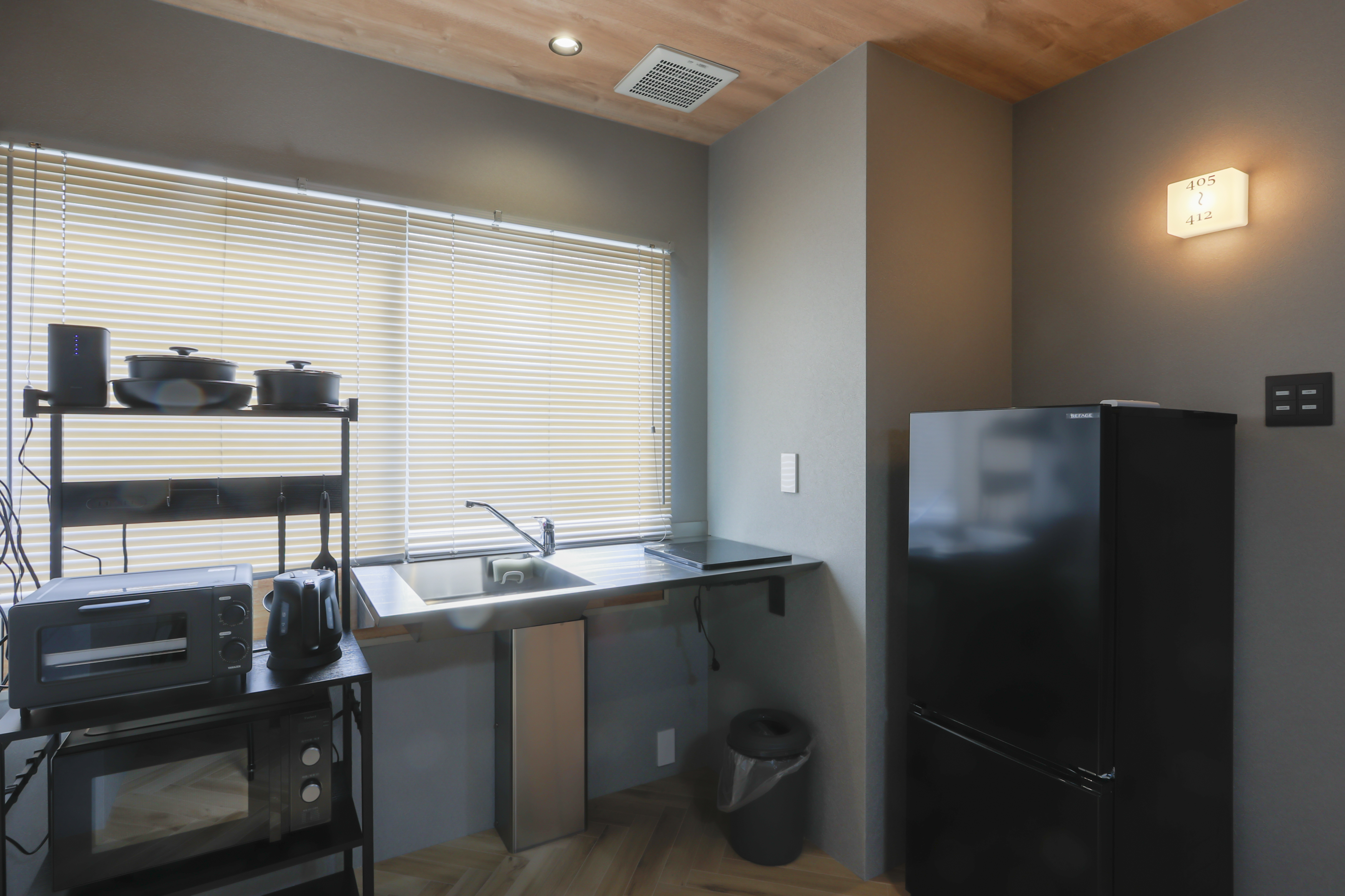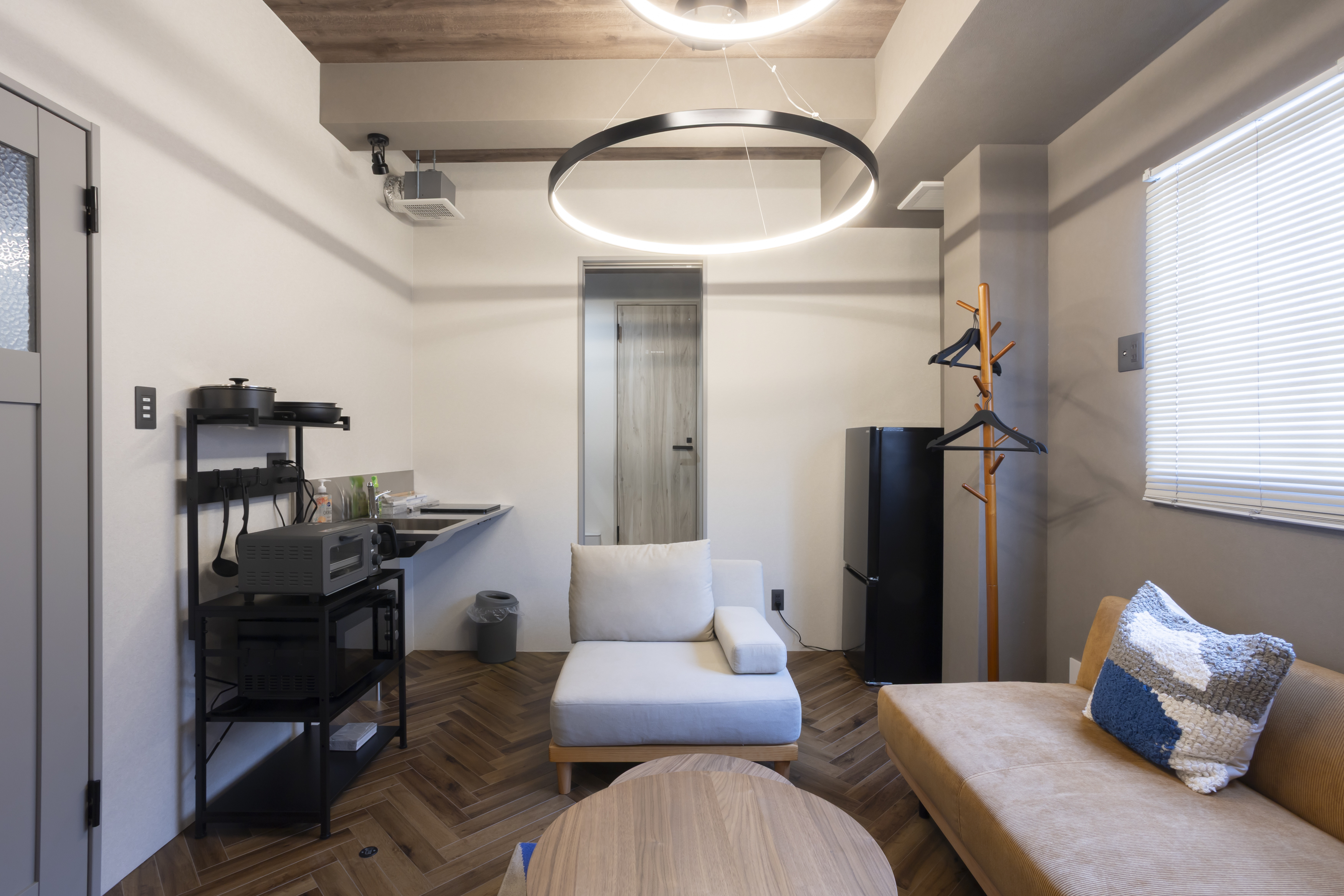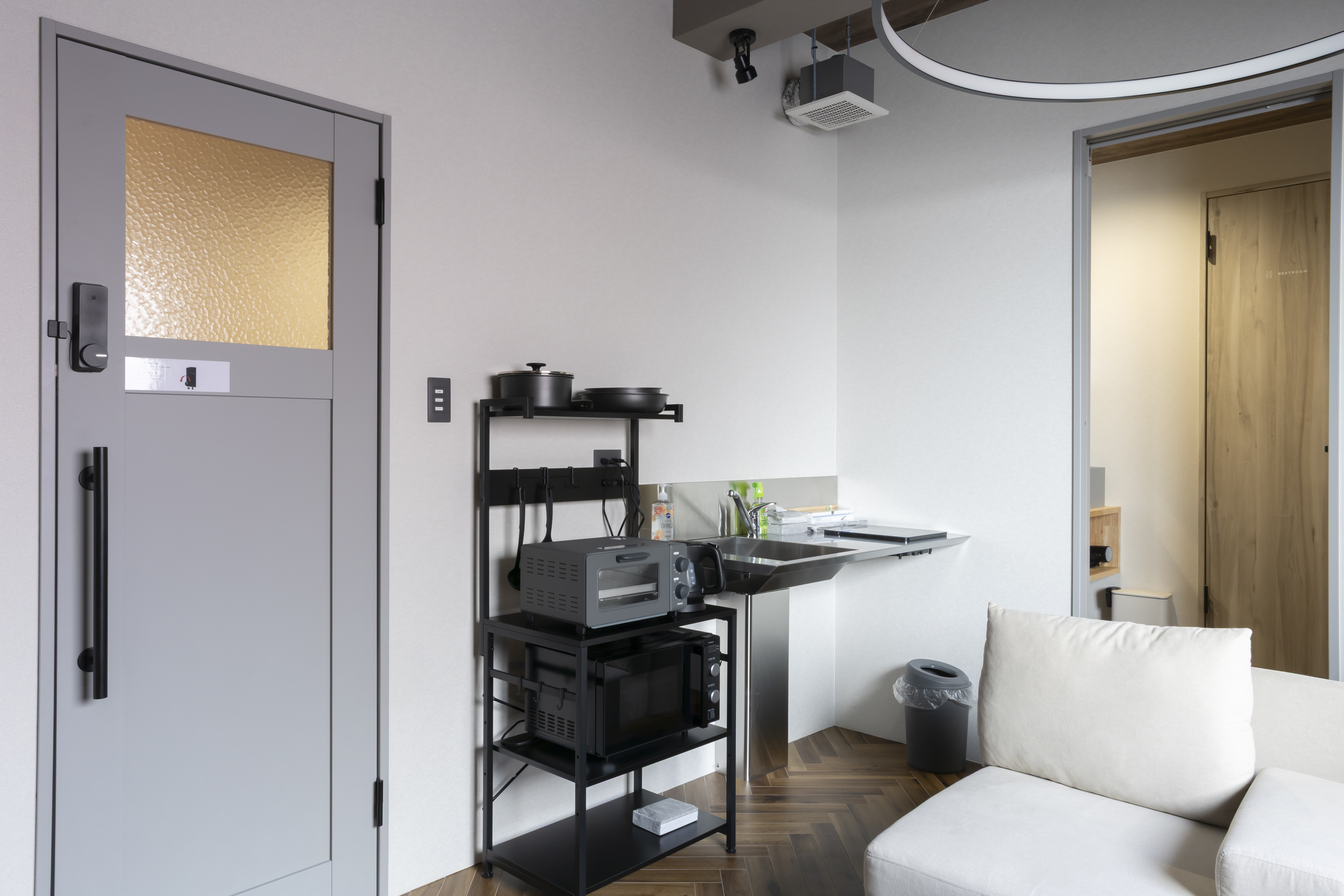 コンパクトな宿泊スペースに加え、共用スペースをご利用いただく形のエリアです。